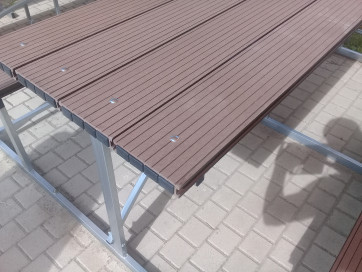 Столешница и лавки изготовлены из террасной доски, толщина 30 мм.