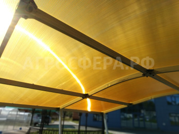 Верх покрывается сотовым поликарбонатом. Цвет на выбор: синий, зеленый, бронзовый, коричневый, молочный, желтый, красный, бордо, бирюза.