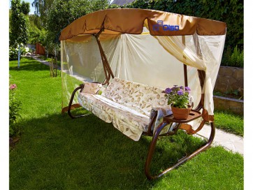 Тент: тент ткань с водоотталкивающей отделкой 100% п/э плотность 120г/м2, с противомоскитной сеткой (полотно гардинное основовязаное 100% п/э плотность 39г/м2) - фиксация сетки на тканевом тенте осуществляется с помощью горизонтальных и вертикальных застежек – «молний».